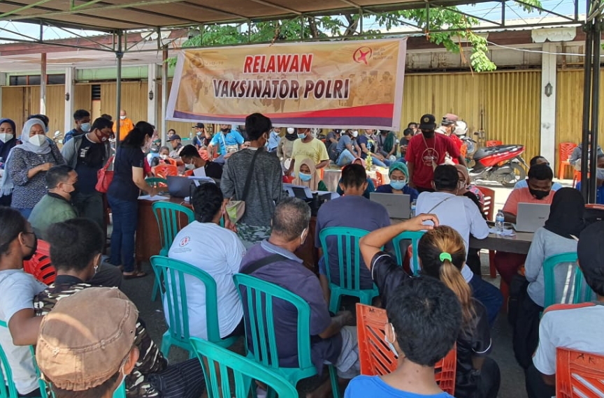 Jayapura – Sebanyak 871 atau hampir 1.000 warga ikuti vaksinasi digerai Vaksin Presisi Polresta Jayapura Kota yang dilaksanakan di lima lokasi yang tersebar di wilayah Kota Jayapura, Papua, pada Sabtu (04/9).