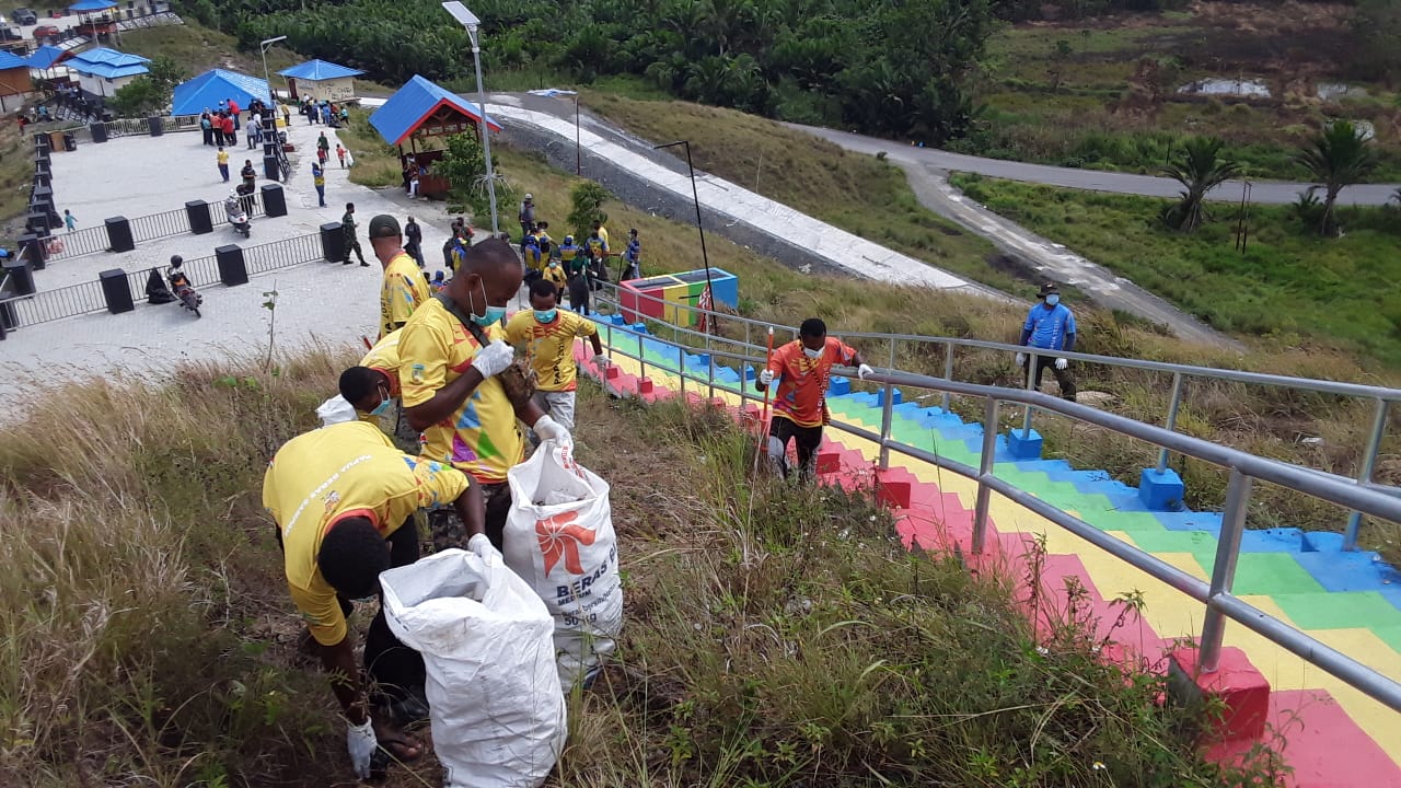 ‘’Tahun ini World Cleanup Day bertepatan dengan pelaksanaan PON XX 2021 dimana Papua menjadi tuan rumah sehingga kita melakukan pembersihan di venue-veneu dan lokasi wisata seperti di Bukit Teletubis ini,’’ ujar Ormuseray saat kegiatan gerebek sampah, Jumat (10/09) pagi.