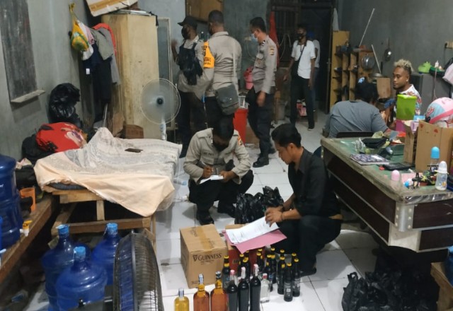 Sentani – Guna cipta kondisi jelang PON XX dan menindak lanjuti adanya laporan masyarakat tentang maraknya peredaran minuman keras, Kapolsek Sentani Barat Iptu Sugarda Aditya, BT, S.TK, MH bersama anggota menggelar razia minuman beralkohol (minol) terhadap para pedagang di Distrik Waibu, Kabupaten Jayapura, Senin (13/09) malam.