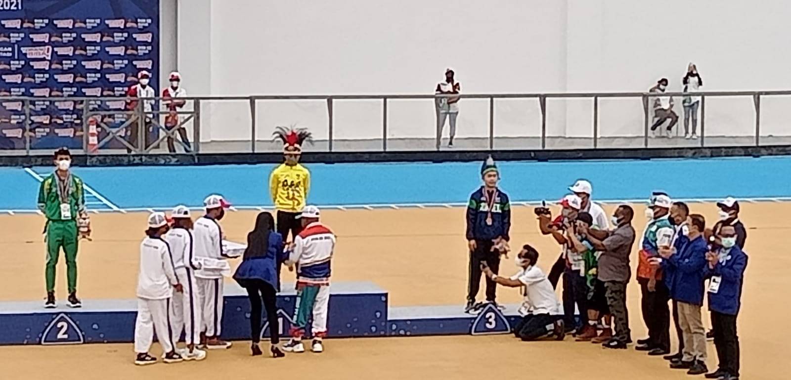 Jayapura – Papua kembali sumbang medali emas di cabang olahraga (Cabor) sepatu roda pada nomor sprint 100 meter yang berlangsung di Stadium Klemen Tinal Roller Sport, Bumi Perkemahan (Buper) Kelurahan Waena, Distrik Heram, Kota Jayapura, Provinsi Papua, Senin (27/09/2021) sekitar pukul 12.30 WIT.