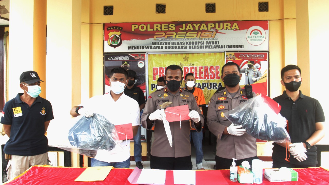Dalam giat Press Conference yang berlangsung Wakapolres Jayapura didampingi Kabag Ops AKP Komang Yudistrio, S.IK, KBO Reskrim Ipda Wahyu, SH., MH, Kanit Tipidter Ipda Arif Sulaiman, S.Tr.K, dan Kanit IV Sat Reskrim Ipda Agus.