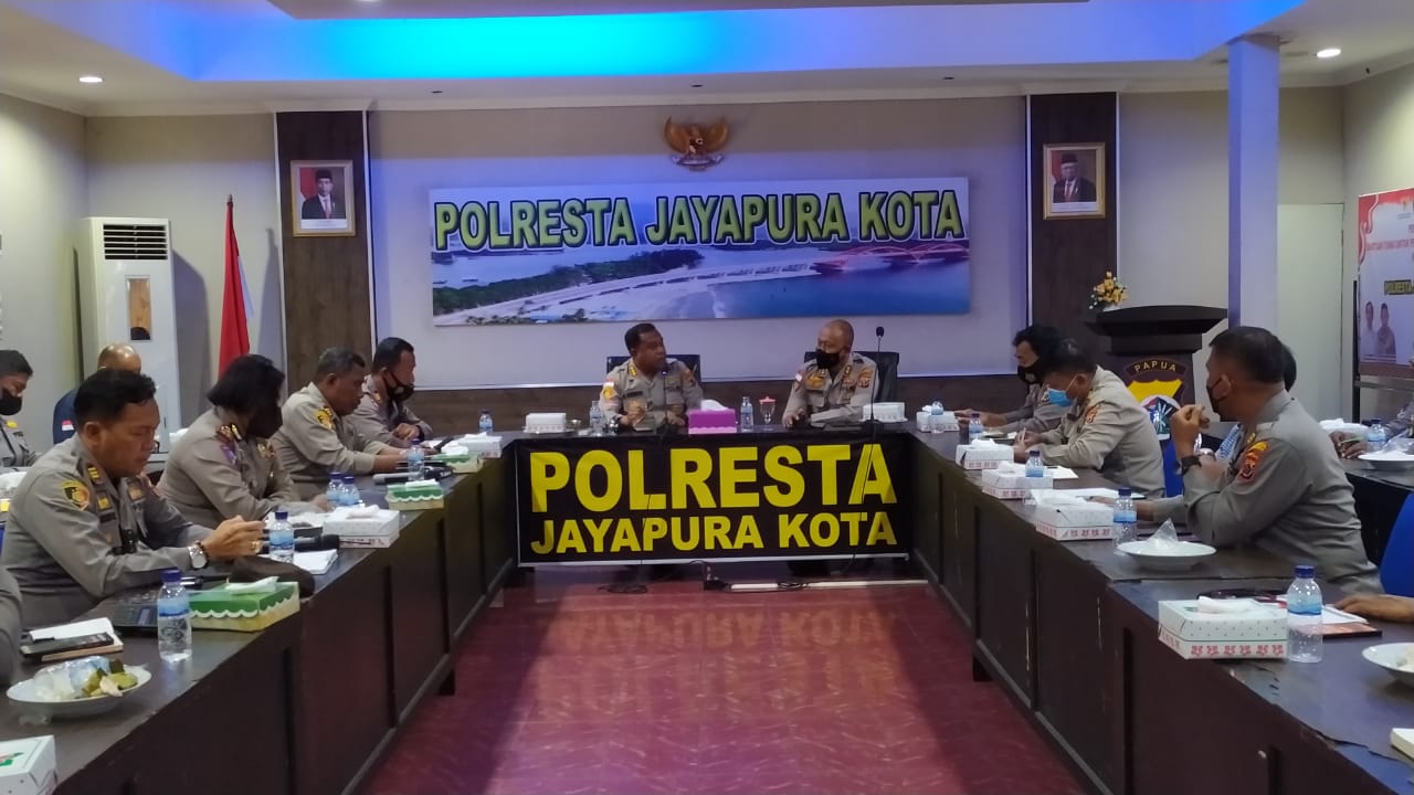 Rapat tersebut di pimpin langsung Kapolresta Jayapura Kota Kombes Pol. Gustav R. Urbinas, SH., S.IK.,MPd didampingi Wakapolresta AKBP Supraptono, S.Sos., M.Si.