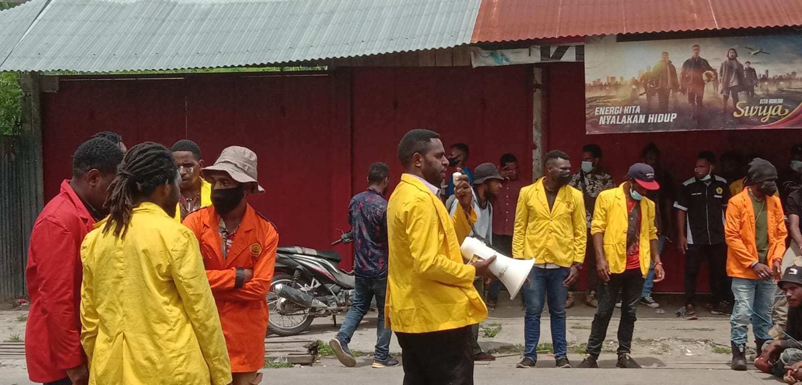 Sekitar pukul 10.49 WIT massa mahasiswa mulai berdatangan, mereka dari arah perumnas 2, bergabung dengan masa yang sudah lebih dulu ada di depan SMA Teruna Bakti berjalan kaki dari arah lampu merah Waena lalu berkumpul di perempatan jalan depan jalan Mega Mall, Waena, Distrik Heram.
