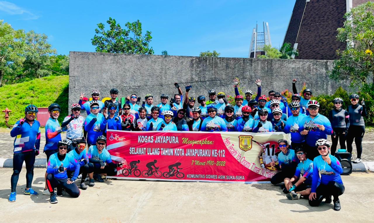 Jayapura – Komunitas Sepeda (KO’GAS) Jayapura memperingati HUT Kota Jayapura ke-112 Tahun 2022, yang jatuh pada tanggal 7 Maret lalu dengan bersepeda dari Jembatan Kali Buaya – Skow pulang pergi, Minggu (13/03) pagi.