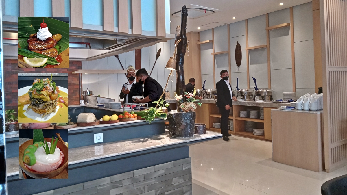 Menu berbahan pisang yang diolah antara lain es pisang ijo dan pepes ikan mujair. Menu andalan tersebut disajikan oleh Fresqa Restauran Batiqa Hotel Jayapura. (YA)