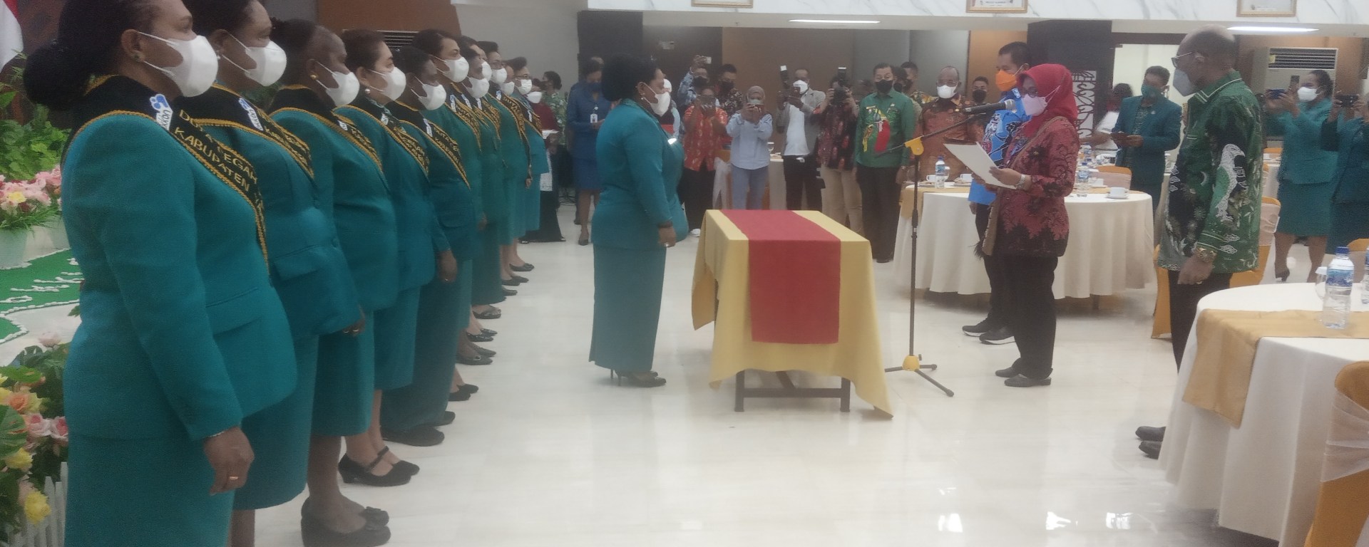 Mereka yang dikukuhkan merupakan Ketua Tim Penggerak PKK Provinsi Papua dan Ketua Tim Penggerak PKK Kabupaten serta Kota se-Papua.