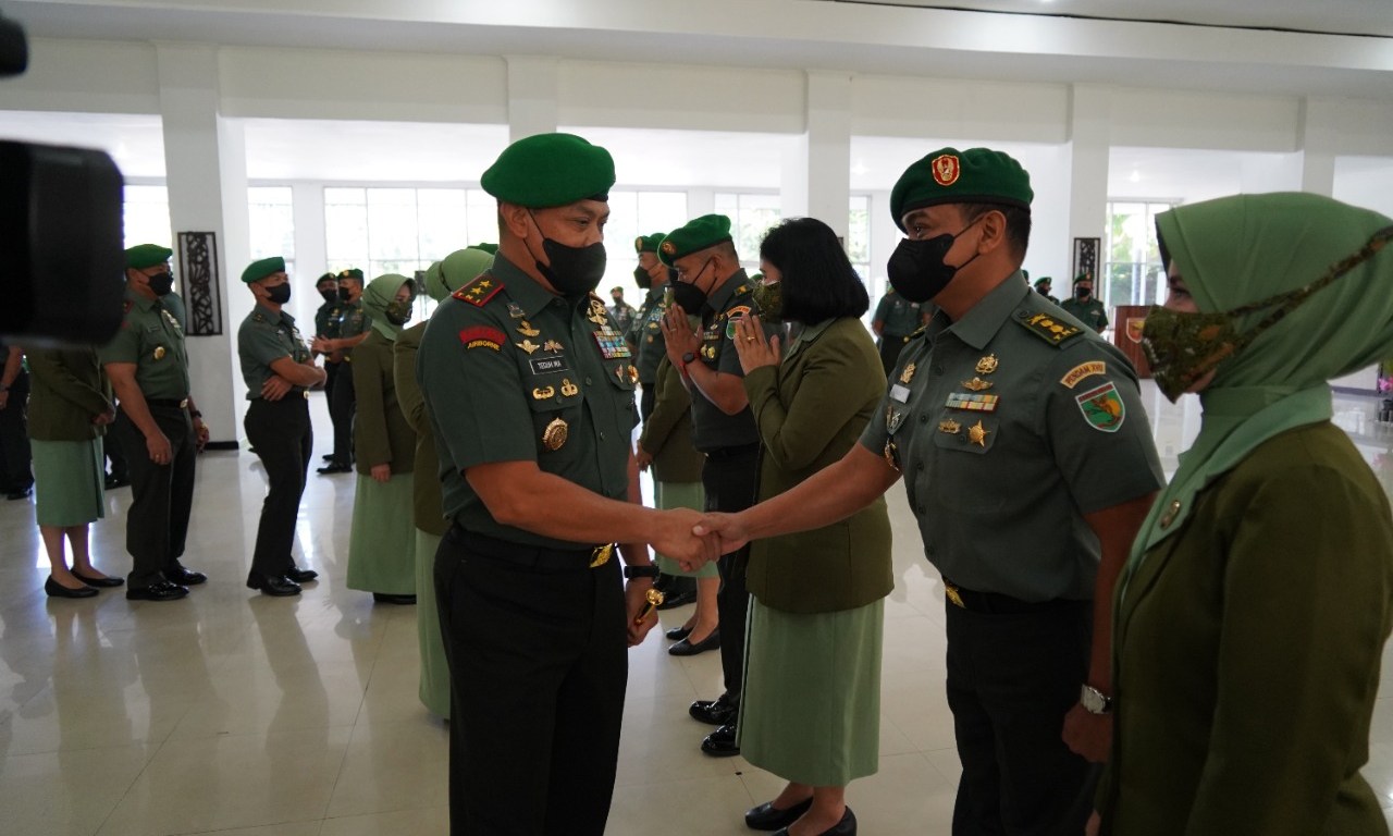 Pangdam XVII/Cenderawasih, Mayjen TNI Teguh Muji Angkasa mengucapkan selamat datang kepada dua pejabat baru yang saat ini telah resmi menjadi keluarga besar Kodam XVII/Cenderawasih Ksatria Pelindung Rakyat.