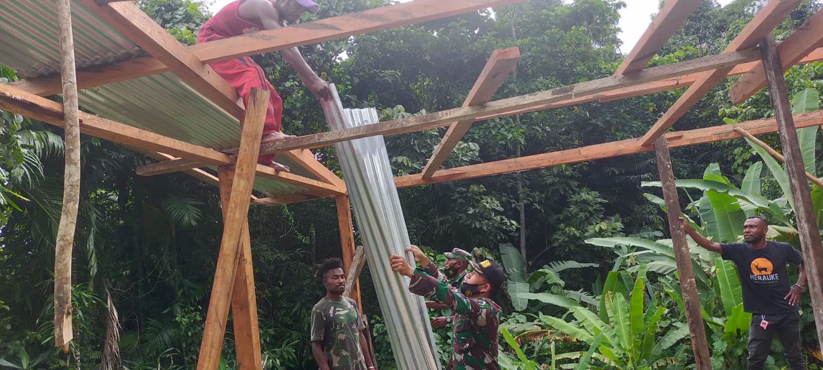 Sebagai salah bentuk kekeluargaan dan kebersamaan dalam lingkup keluarga atau kelompok yang harus terus dilestarikan yaitu membantu dalam proses perehapan rumah warga Desa Maryadori, Distrik Supiori Selatan, Kabupaten Supiori, Selasa 19 April 2022.