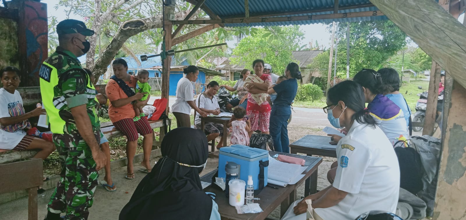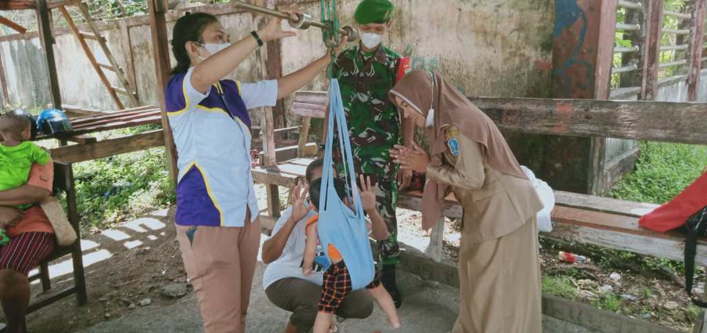 Biak – Babinsa Koramil 1708-01/BK Serka M.P. Rumsowek dan Kopda Khoirul Mutakin melaksanakan pendampingan kegiatan Posyandu balita dan ibu hamil di Pos Kesehatan Desa ( PKD ) Kelurahan Samofa, Distrik Samofa, Kabupaten Biak Numfor, pada Rabu 20 April 2022.