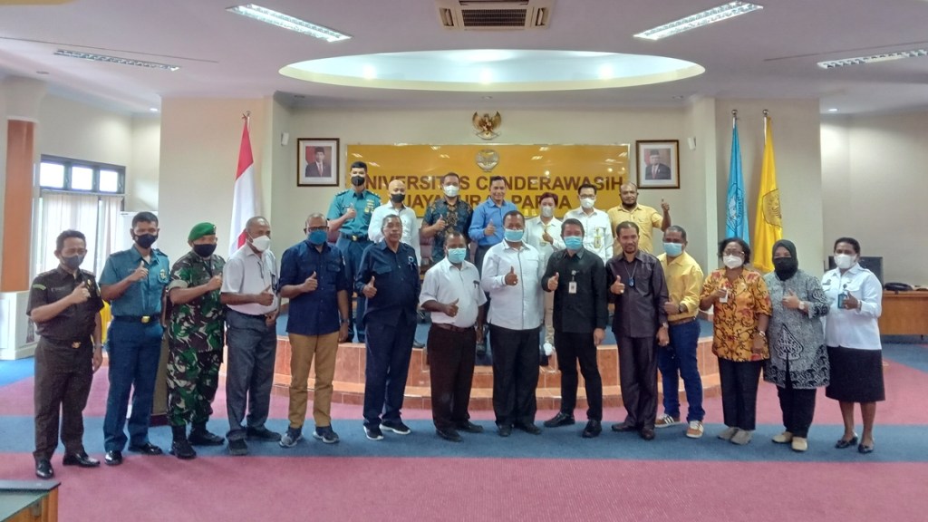 Sosialisasi Rencana Pembentukan dan Penerimaan Penghubung Komisi Yudisial Wilayah Papua turut dihadiri oleh Pembantu Rektor IV DR. Fredrik Sokoy, S.Sos.,M.Sos, Hakim AdHoc Pengadilan Tinggi Jayapura DR. Josner Simanjuntak, S.H., M.Hum, akademisi, praktisi dan pemerhati hukum. (YA)