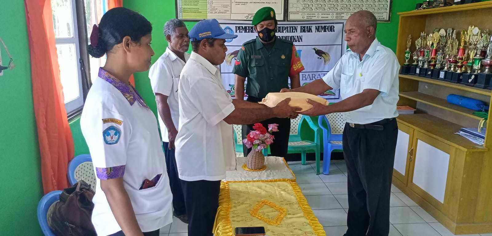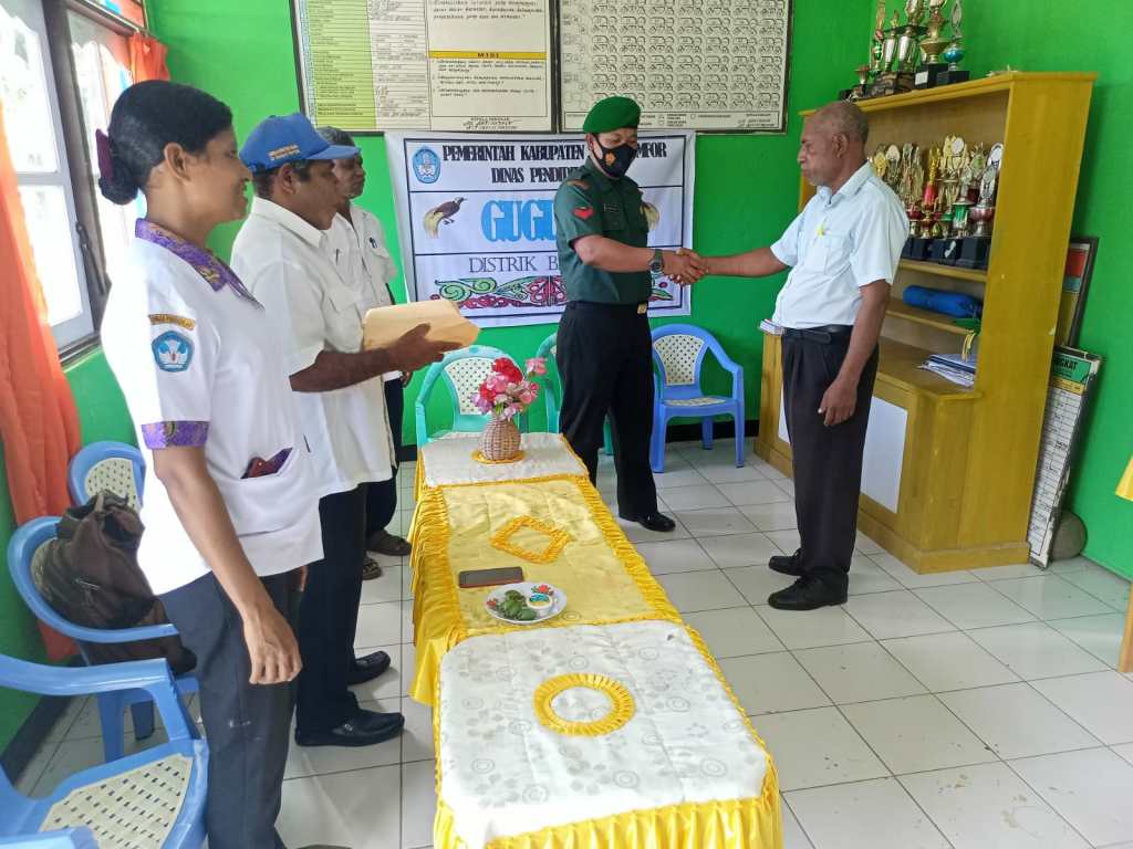 Yomdori – Babinsa Koptu Adi secara langsung melihat dan memantau dalam penyerahan soal ujian tingkat SD kelas 6 di ruangan kepala sekolah,di Kampung Yomdori, Distrik Biak Barat, Kabupaten Biak Numfor, Papua, Kamis, 21 April 2022