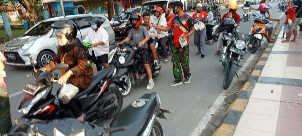 Sertu Induwek membagikan takjil kepada pengendara dan masyarakat yang melintas, dari mulai angkutan umum, pengendara motor, pengendara sepeda maupun pejalan kaki.