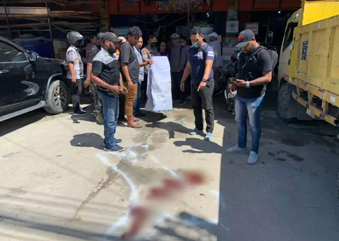 Korban Yohana Milkanapo (42) meninggal dunia dalam kondisi perut terbelah hingga usus perut keluar dan kedua tangan ada luka sayatan pisau dilokasi kejadian tepatnya di depan Toko Bangunan Mamta Jaya Entrop Distrik Jayapura Selatan, Kota Jayapura, Papua, sekitar pukul 12.30 WIT, Selasa 26 April 2022.