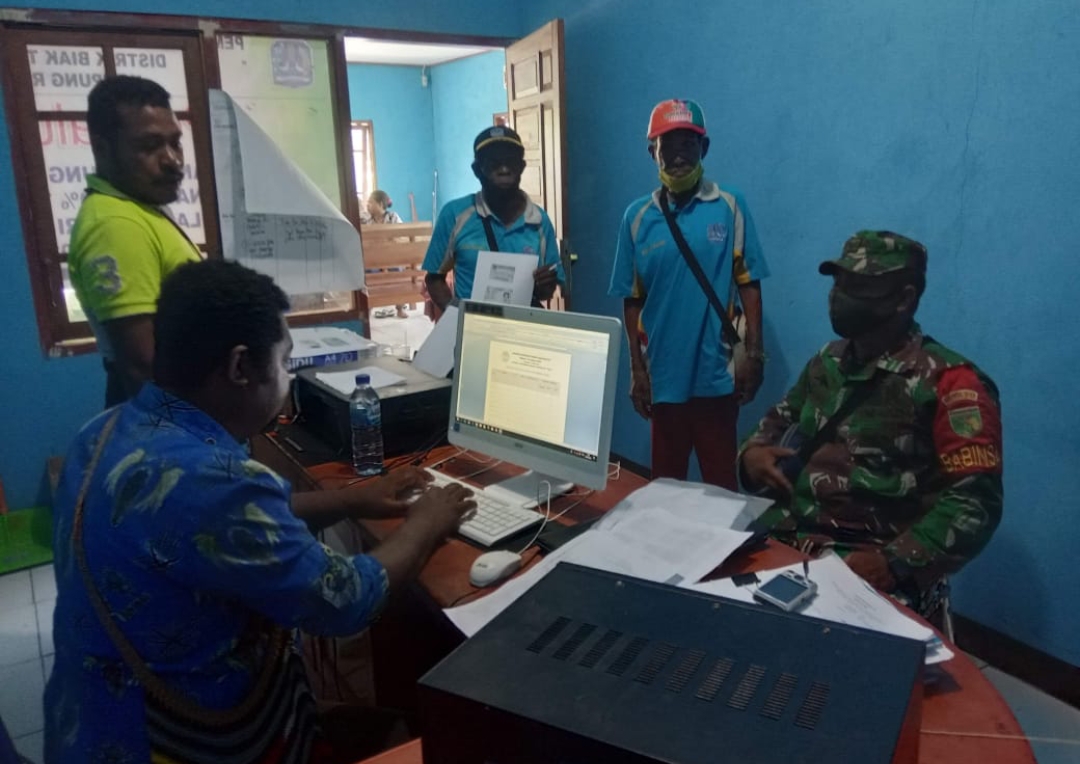 Biak Timur – Babinsa Posramil 1708-01/Biak Timur Sertu Wahyu Hendro Patrias Setiawan berinteraksi dan berkomunikasi secara langsung melalui metode Komunikasi Sosial (Komsos) bersama Kepala dan Perangkat Kampung Rim, Distrik Biak Timur, Kabupaten Biak Numfor, Papua, Sabtu 30 April 2022.