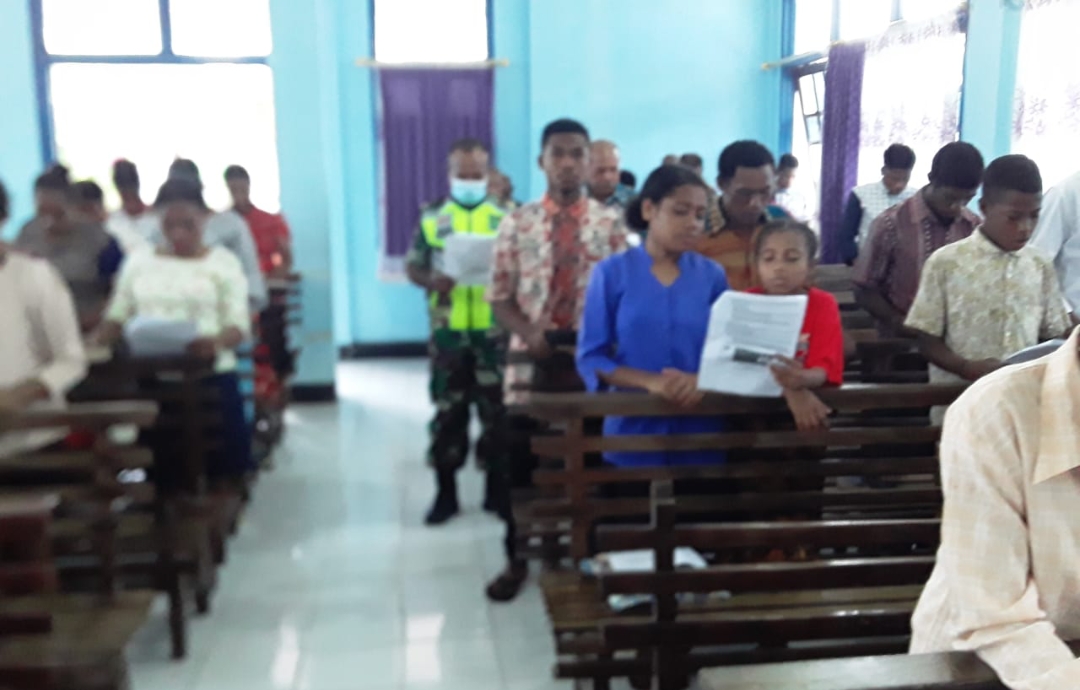 Numfor – Bertempat di Gereja Baitel Yenburwo, Babinsa Koramil 1708-05/Numfor Sertu Ronal melakasanakan ibadah bersama warga, di Kampung Yenburwo, Distrik Numfor Timur, Kabupaten Biak Numfor, Papua, Minggu 1 Mei 2022.