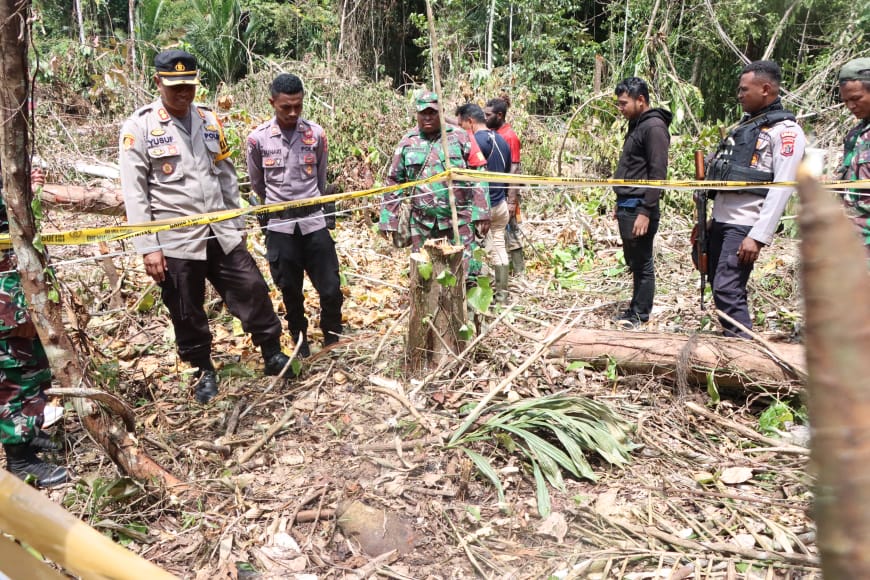 Kapolres Mamberamo Raya AKBP. Yusuf Wahyudiono S.I.K bersama Tim Gabungan langsung mendatangi Lokasi penemuan bahan peledak (Mortir) dan melakukan pengamanan di area penemuan tersebut.