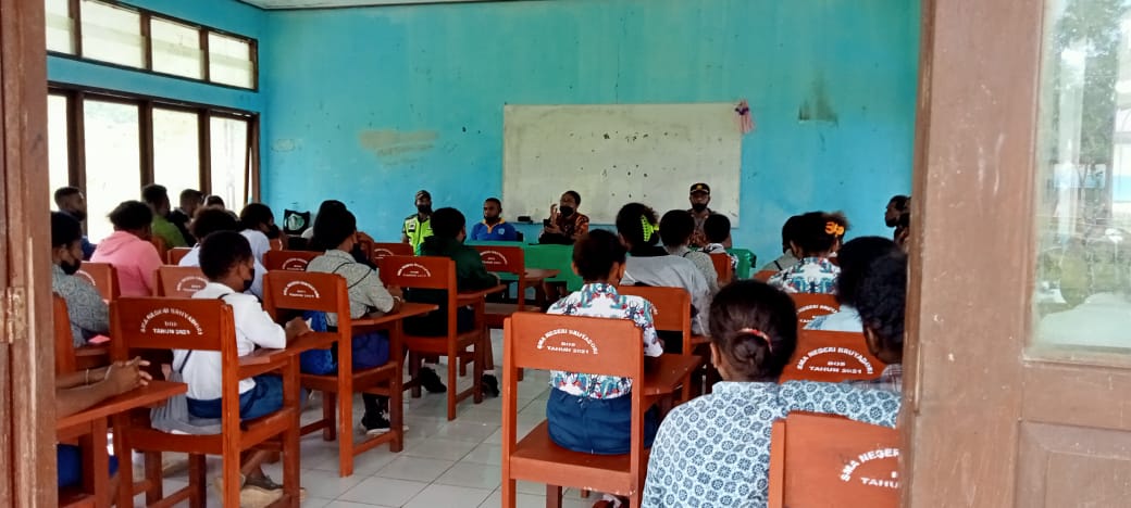 Turut Hadir dalam kegiatan tersebut Kepala Distrik Bruyadori Ibu Khetrine Wanma, Kapolsek Numfor Timur Iptu Hendrik Antonius Rumbrapuk, Kepala sekolah SMA Negeri 2 Bruyadori Bapak Yohan Wabiser, dan Kepala Puskesmas Bruyadori Ibu Oce Kafiar S.Tr.kep. (Pendim 1708/BN)