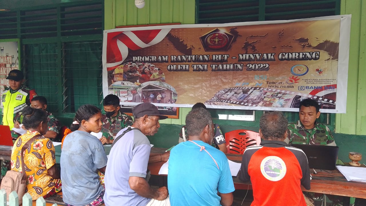 Supiori – Kodim 1708/Biak Numfor (BN) kembali salurkan Bantuan Langsung Tunai (BLT) Minyak Goreng (Migor) kepada masyarakat penerima manfaat pada hari ke 3 bertempat di Koramil 1708-04/SS, Kampung Fanendi, Distrik Supiori Selatan, Kabupaten Supiori, Papua, Jumat 20 Mei 2022.