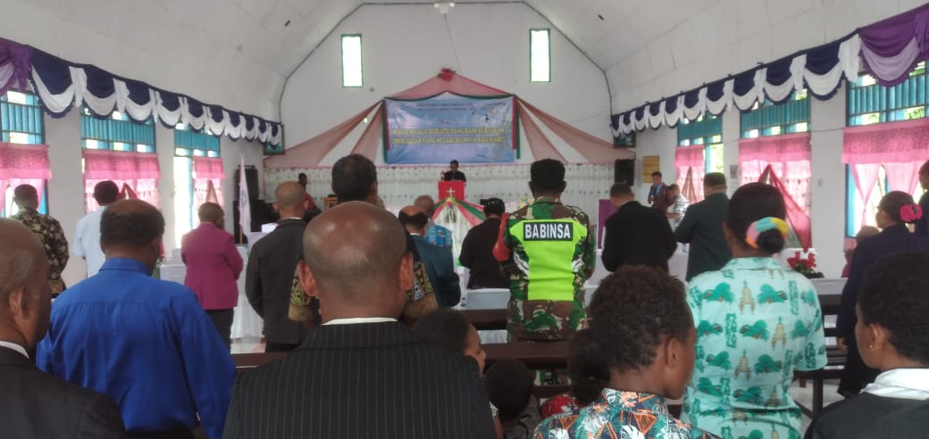 Warsa – Babinsa Posramil 1708-02/BU-Warsa Sertu Paulus Karuapi hadiri Ibadah Pelantikan Pejabat baru Organisasi Gereja Bethel Gereja Pentakosta (GBGP) di Tanah Papua Wilayah IV Periode 2022-2027 di Gedung GBGP Pniel Sanadi, Kampung Inswanbesi Sup, Distrik Warsa, Kabupaten Biak Numfor, Papua, Kamis 26 Mei 2022.