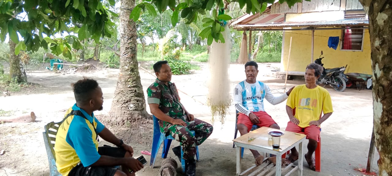 Supiori – Guna mempererat hubungan baik dengan masyarakat Babinsa Koramil 1708-06/SU, Sertu Habel Kopong menggelar anjangsana di kampung binaan bertempat di halaman rumah Bapak Yohanes Mansoben Kampung Waryei, Distrik Supiori Utara, Kabupaten Supoliori, Papua, Senin 30 Meib2022.