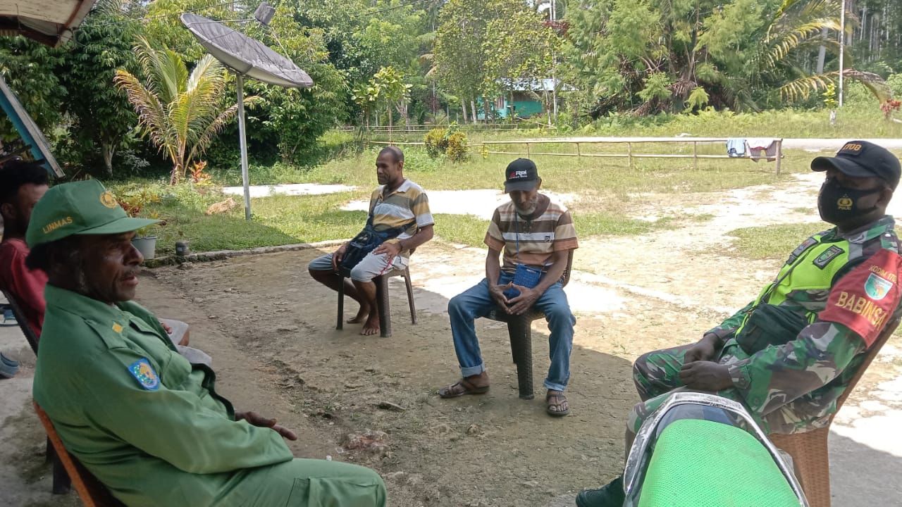 Warsa – Guna tingkatkan kerja sama, Babinsa Sertu Paulus Karuapi menggelar komunikasi sosial (Komsos) bersama anggota Linmas dan Aparat Kampung, di Kampung Warawaf, Distrik Warsa, Kabupaten Biak Numfor, Papua, Rabu 01 Juni 2022.