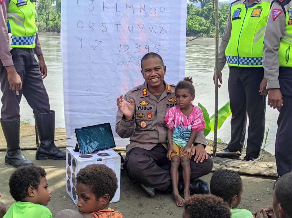 Kasonaweja – Kapolres Mamberamo Raya AKBP Yusuf Wahyudiono memimpin program kegiatan Si Ipar (Polisi Pergi Ajar) yakni mengajar anak-anak usia dini dari warga Kampung Wakayadi, Noyadi dan Biri bertempat di Kampung Burmeso Distrik Mamberamo Tengah, Kabupaten Mamberamo Raya, Papua, Rabu 08 Juni 2022.