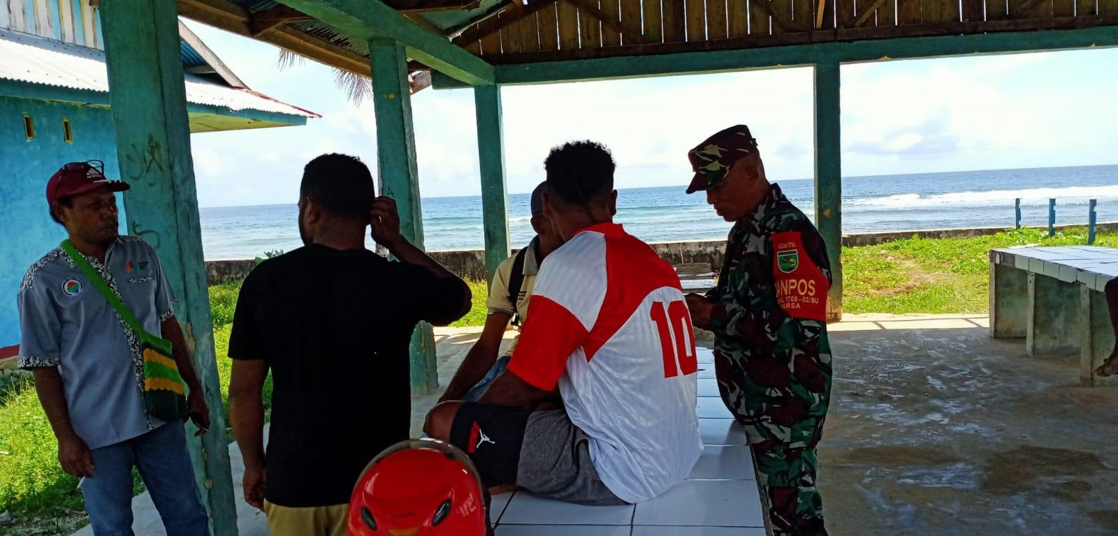Warsa – Danpos Ramil 1708-02/BU-Warsa Serma Ahmat Sakka melaksanakan Komunikasi Sosial (Komsos) dengan warga binaannya demi terciptanya kemanunggalan TNI-Rakyat dan meningkatkan peran guna mengetahui perkembangan di Kampung Inswanbesi Sup, Distrik Warsa, Kab Biak numfor, Papua, Sabtu 11 Juni 2022.
