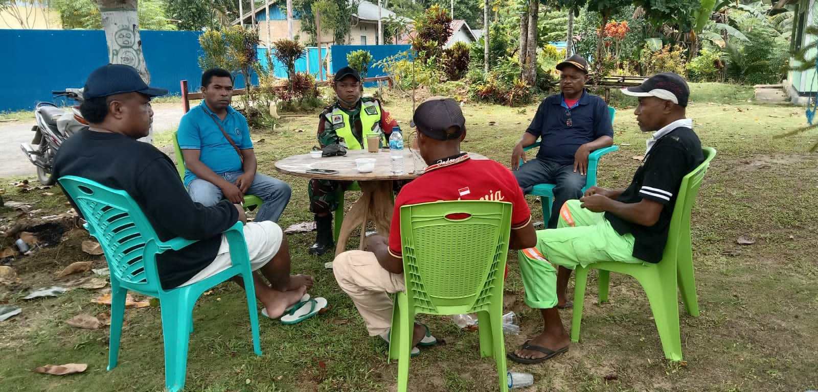 Supiori – Untuk menciptakan wilayah aman dan Kondusif, Babinsa Koramil 1708-06/Supiori Utara Serda Agustinus S.M.R menjelaskan dan memberi pemahaman kepada masyarakat tentang Kamtibmas di Kampung Waryesi, Distrik Supiori Utara, Kabupaten Supiori, Papua, Minggu 12 Juni 2022.