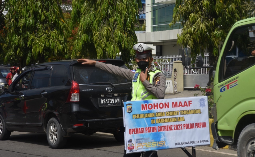Jayapura – Pelaksanaan hari ketiga Operasi Patuh Cartenz 2022 Polda Papua yang dipimpin oleh Perwira Pengendali Iptu Lamasi yang diselenggarakan di Depan Mapolda Papua, Kota Jayapura, Rabu 15 Juni 2022.