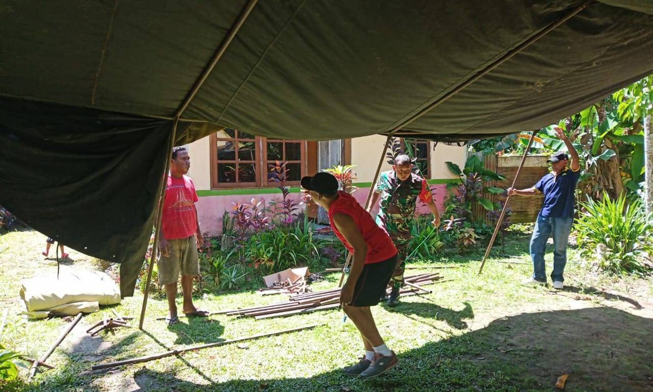 “Agar dengan terpasangnya tenda dapat memperlancar proses pelaksanaan ibadah dan mendukung kegiatan pemakaman,” terang Letda Inf Matius Laduk Salurapa.