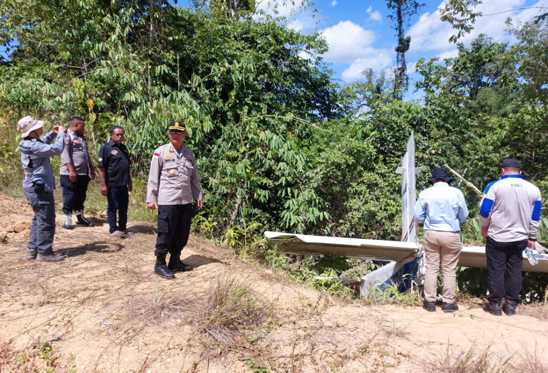 Arso – Kepolisian Resor Keerom bersama Tim Komite Nasional Keselamatan Transportasi (KNKT) menggelar Investigasi Pendaratan Darurat Pesawat Udara Jenis AMA PK – RCQ yang bertempat di Kampung Molof, Distrik Senggi, Kabupaten Keerom, Papua, pada Kamis 30 Juni 2022.