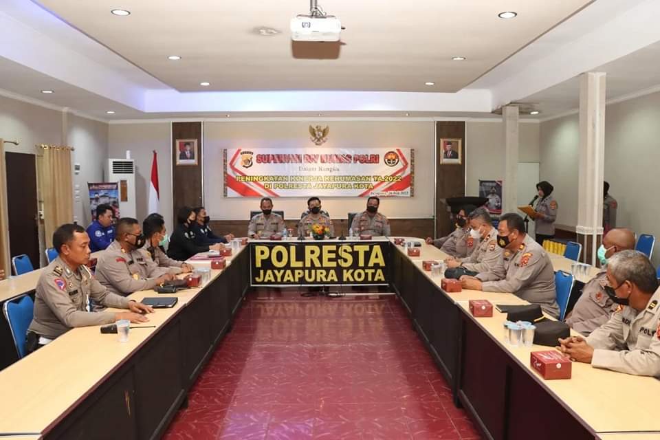 Jayapura – Tim Divisi Humas Mabes Polri lakukan Supervisi Kinerja Kehumasan bertempat di Aula Mapolresta Jayapura Kota, Selasa siang 26 Juli 2022.