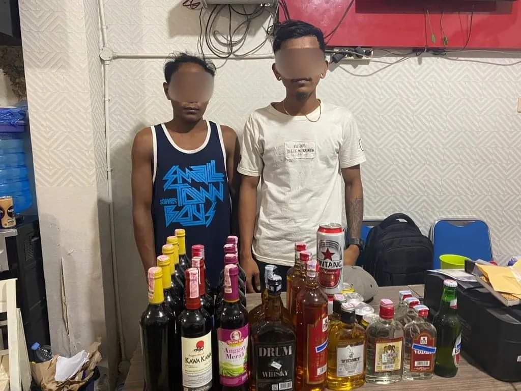 Dari kedua pelaku petugas berhasil mengamankan barang bukti sebanyak 28 minuman keras berbagai jenis diantaranya, 2 (dua) Kaleng Bir Bintang Jumbo, 3 (Tiga) Botol Vodka, 4 (Empat) Botol Anggur Merah, 3 (tiga) Botol Whiskey Robinson, 1 (Satu) Botol Anggur Merah Javan, 2 (Dua) botol anggur merah Kawa-Kawa, 5 (Lima) Botol Anggur merah Gold, 2 (Dua) Botol Mansion House, 1 (satu) Botol Mansion Vodka, 2 (Dua) Botol Whiskey Drum, 4 (Empat) Bir hitam Kaleng Guinnes Kecil dan 1 (Satu) Botol bir hitam Guinnes botol.