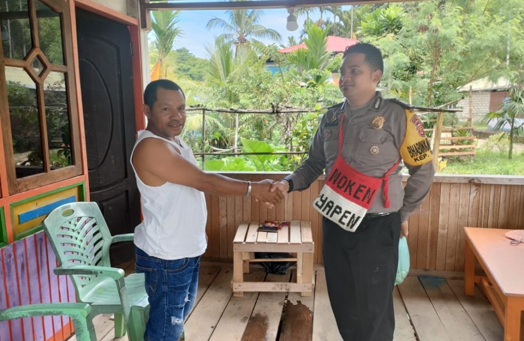 Selaku tokoh masyarakat Kampung Pasir Hitam, Bapak Basir menyampaikan terima kasih atas kunjungan dan arahan dari anggota Bhabinkamtibmas Polres Kepulauan Yapen.