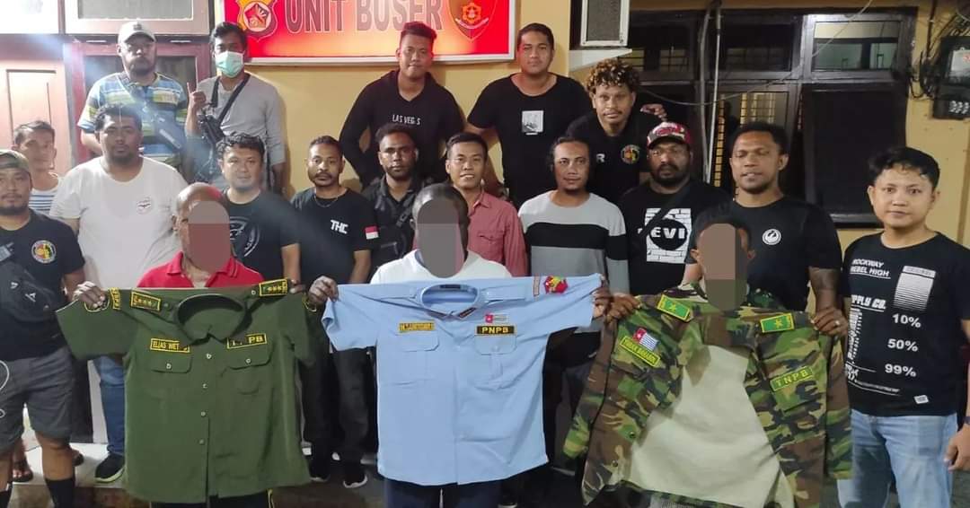 Lanjut Kapolres, Ketiga pelaku yang diamankan berinisial YB (42), MOS, dan EW (58) yang diduga memiliki peran penting sebagai Staf KASAD NRFPB , Sekertaris Negara NRFPB dan Penasihat Presiden NRFPB, ” Polisi juga berhasil mengamankan barang bukti seragam loreng TNPB dan 2 seragam PNBP lengkap dengan atribut dari ketiga pelaku makar tersebut, “jelasnya.