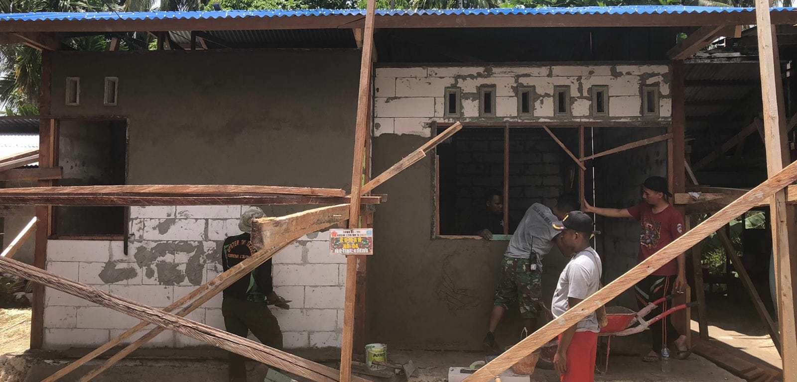 Serka Yakob Boseren selaku kepala tukang di rumah tersebut mengatakan, progres pembangunan rumah type K-45 milik Ibu Tina Korwa ini telah sampai pada tahap plesteran dinding ruangan luar, “Dan pekerjaan ini akan terus kami kejar agar sesuai dengan target,” ucap Serka Yakob.