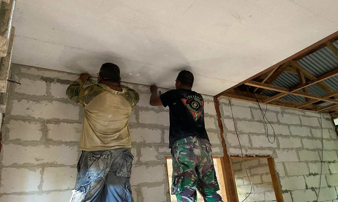 SENTANINEWS.ID – Biak – Pekerjaan sasaran fisik terus di tingkatkan oleh Satgas TMMD Ke-115 Kodim 1708/BN bersama warga yang kini sudah memasuki tahap pemasangan plafon di Kampung Sorido, Distrik Biak Kota, Kabupaten Biak Numfor, Papua, Minggu 23 Oktober 2022.