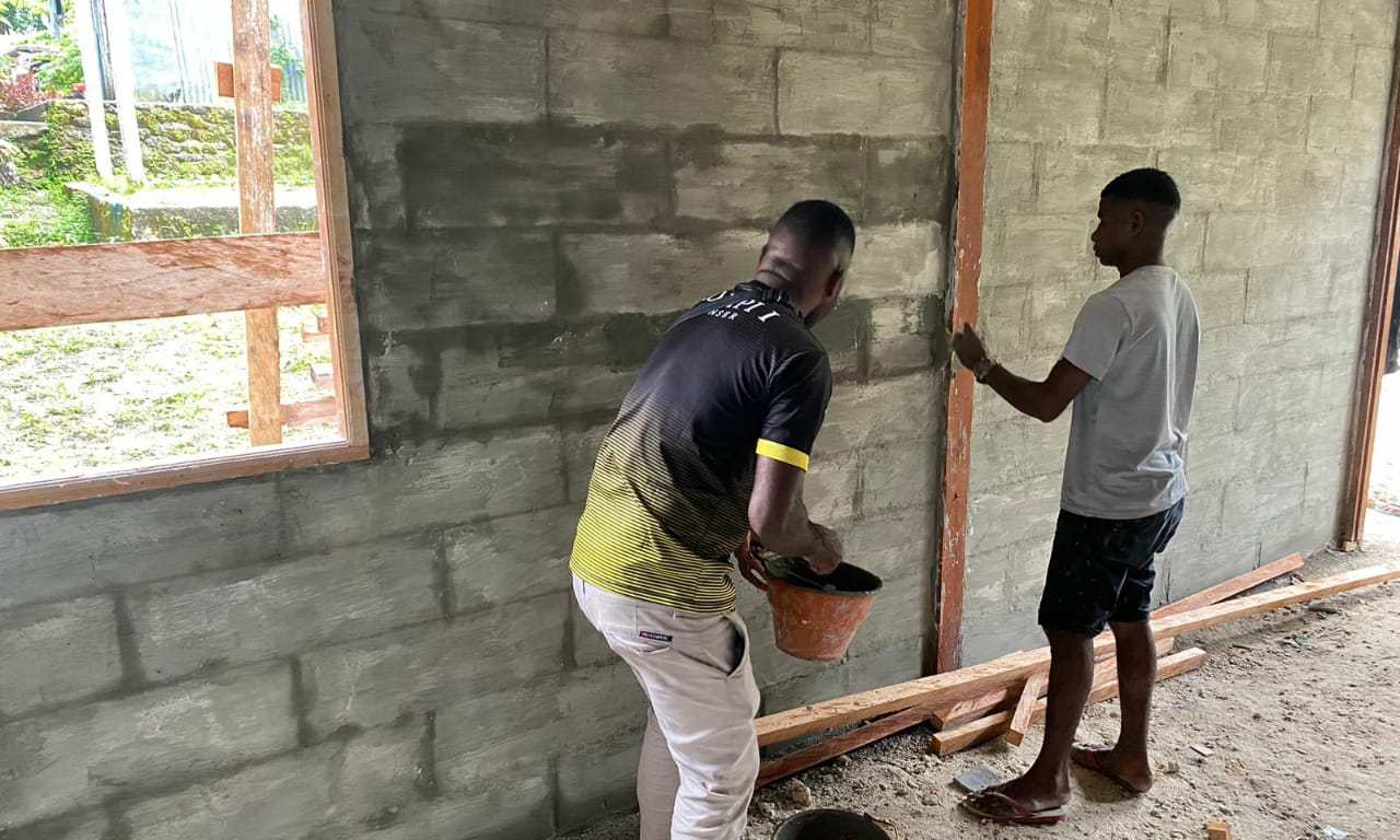 SENTANINEWS.ID – Biak – Proses pembangunan 10 unit rumah yang merupakan sasaran fisik satgas TMMD Ke-115 Kodim 1708/BN di Kampung Sorido, Distrik Biak Kota kini sudah mencapai 80 persen seperti yang terlihat di sasaran rumah nomor 1 sudah memasuki proses plester atau pengacian tembok.