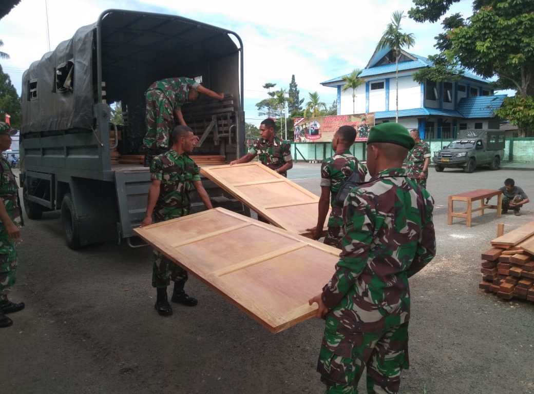 SENTANINEWS.ID – Biak – Sejumlah Prajurit TNI yang tergabung dalam Satuan Tugas (Satgas) TNI Manunggal Membangun Desa (TMMD) Ke-115 Kodim 1708/BN, angkut daun pintu yang akan di distribusikan ke sasaran fisik TMMD di Kampung Sorido, Distrik Biak Kota, Kabupaten Biak Numfor, Papua, Rabu 02 November 2022.