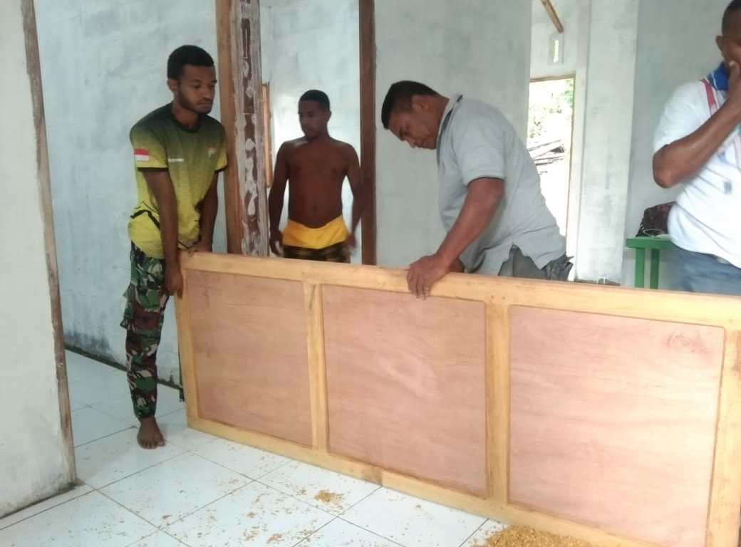 Sementara itu, Frenky Korwa yang ikut membantu pemasangan pintu tersebut mengucapkan banyak terima kasih kepada anggota Satgas TMMD Kodim 1708/BN yang telah membangun rumahnya.