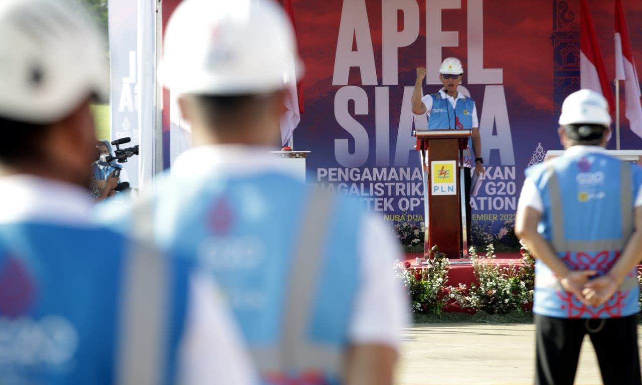 SENTANINEWS.ID – Nusa Dua – PT PLN (Persero) mengerahkan 1.079 personel untuk menghadirkan pasokan listrik tanpa kedip saat pelaksanaan Konferensi Tingkat Tinggi (KTT) G20 yang digelar di Bali pada 15-16 November 2022. Hal tersebut ditegaskan Direktur Utama PLN Darmawan Prasodjo saat memimpin apel akbar posko siaga kelistrikan KTT G20.
