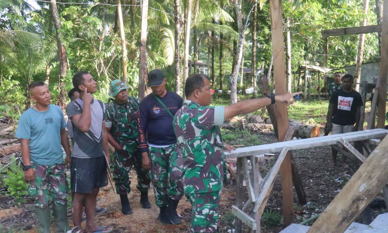 Disamping meninjau sasaran bangunan Dansatgas juga menyempatkan berdialog dengan Mama (Ibu) Tina Korwa pemilik rumah nomor 4 terkait pembangunan sasaran fisik TMMD Ke-115.