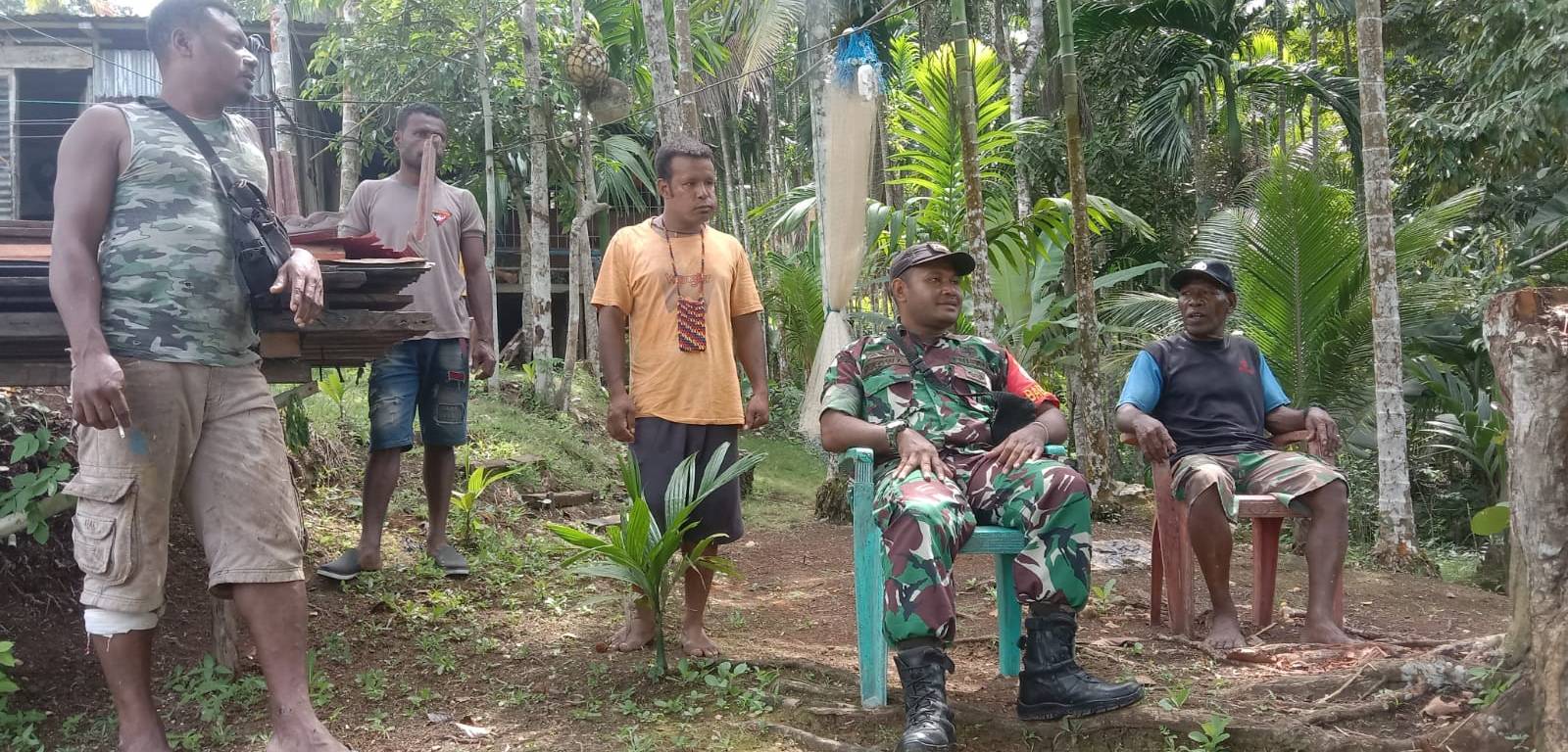 SENTANINEWS.ID – Supiori Selatan – Dalam rangka meningkatkan sinergitas dan keakraban di wilayah binaanya, Babinsa Koramil 1708 -04 Supiori Selatan, Serda Hofni Hendrik Padwa menggelar komunikasi sosial (Komsos) dengan warga Kampung Wombonda, Distrik Supiori Timur, Kabupaten Supiori, Papua, Selasa 08 November 2022.
