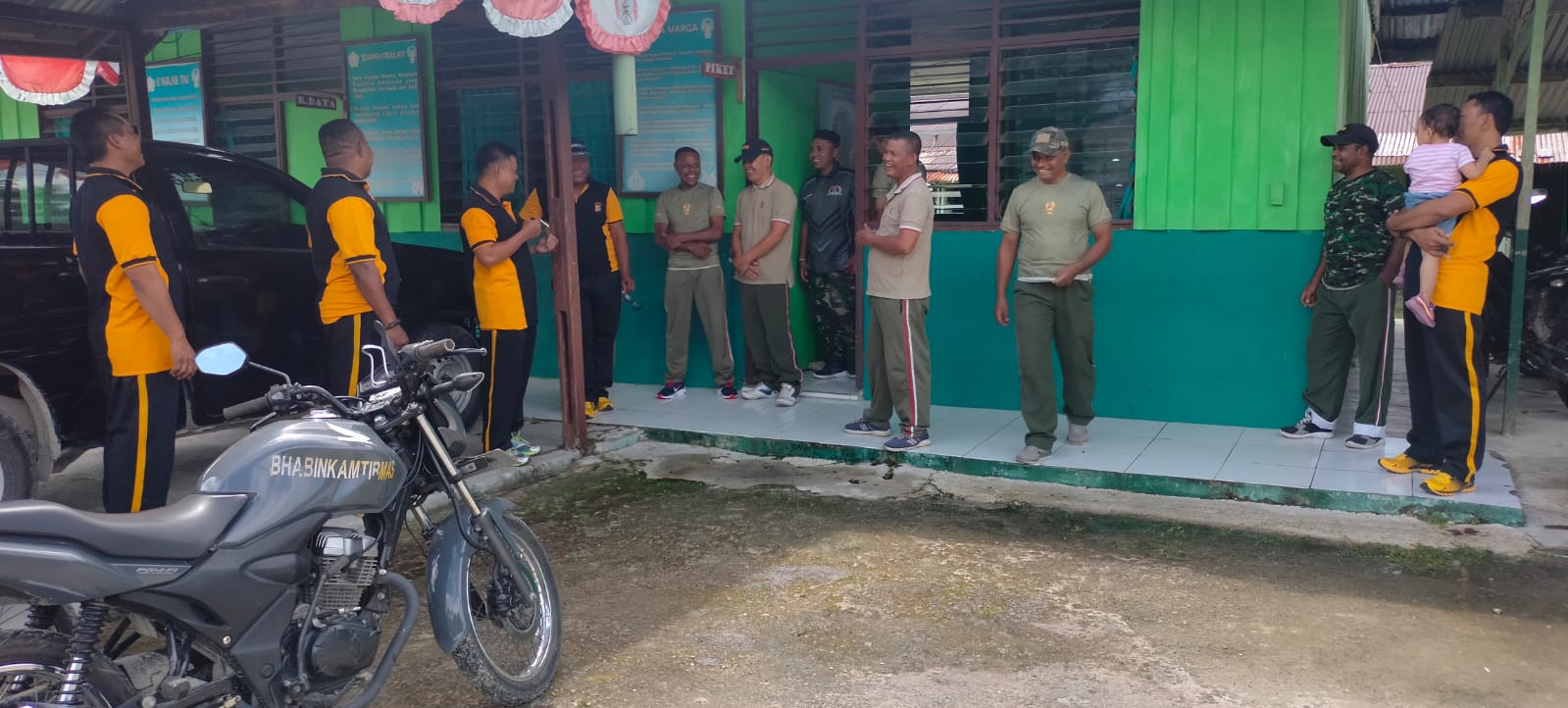 Kedatangan Wakapolsek beserta para anggota disambut hangat oleh Serka Yohni Hermanto yang juga di dampingi anggotanya.