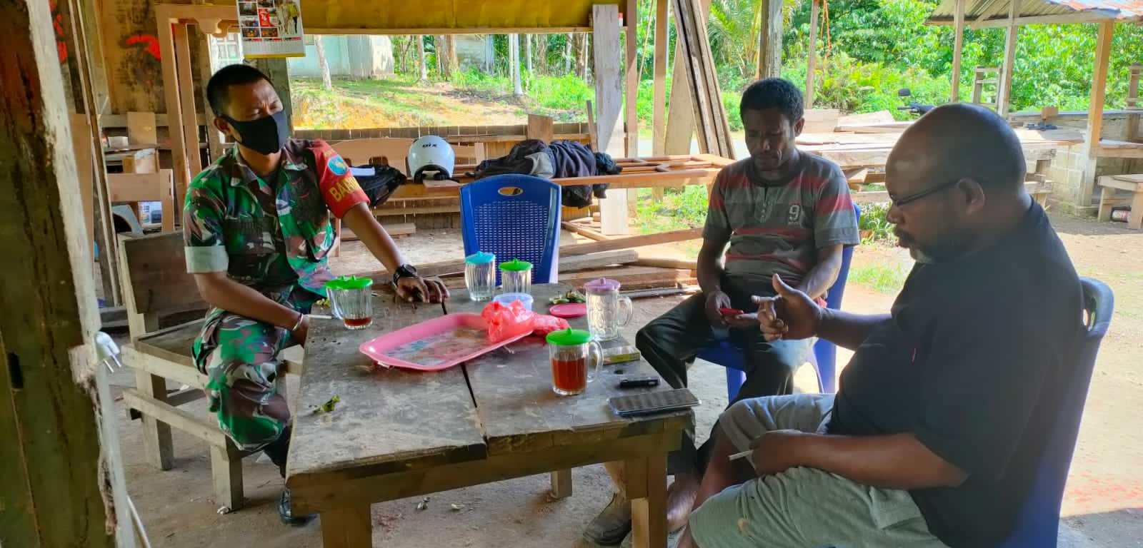 SENTANINEWS.ID – Biak Utara – Babinsa Koramil 1708-02/Biak Utara Sertu Teguh S anjangsana dengan warga binaan di Kampung Mnuswor, Distrik Biak Utara, Kabupaten Baik Numfor, Papua, Selasa 15 November 2022.