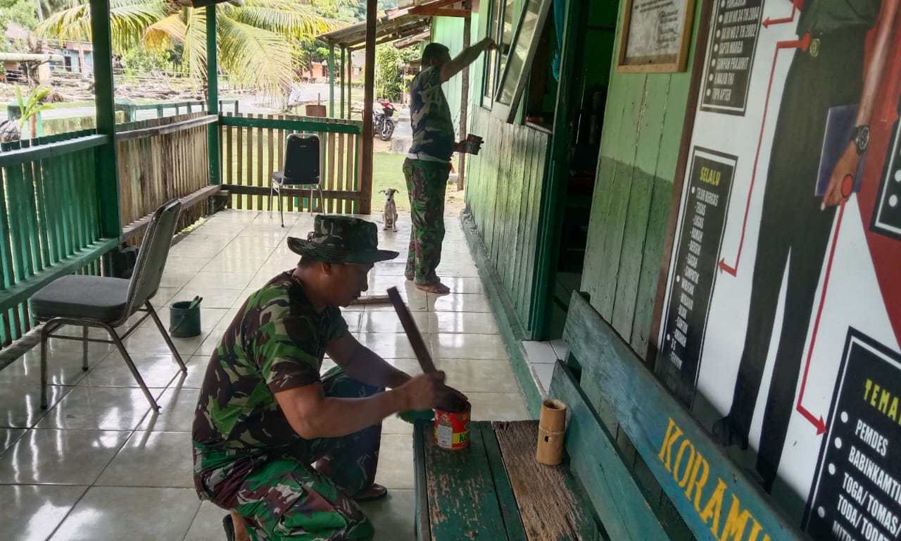 Di sela-sela padatnya kegiatan di wilayah binaan, anggota Koramil 1708-06/SU tetap memperhatikan pangkalannya yaitu dengan memanfaatkan waktu guna melakukan pembenahan pangkalan Makoramil.