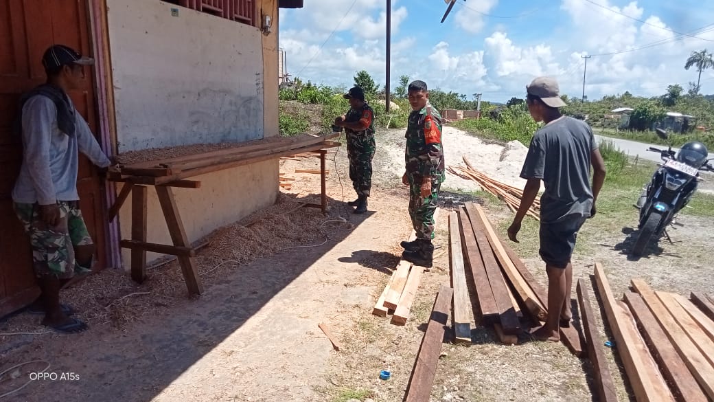 Di sela- sela kegiatan, Sertu Dodik Warbal didampingi Sertu M. Yamin mengingatkan kepada warga untuk memperhatikan kelurusan permukaan kayu yang diserut atau disekap, sehingga kayu yang sudah di sekap dan akan digunakan sebagai bahan untuk membuat rumah lebih mudah dalam pengerjaannya.