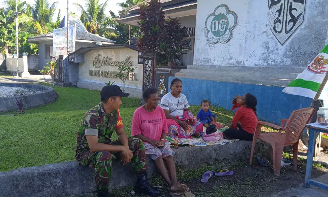 SENTANINEWS.ID – Biak – Guna menjalin hubungan yang harmonis bersama warga, Babinsa Koramil 1708-01/Biak Kota Sertu Yu’anas melaksanakan kegiatan komunikasi sosial (Komsos) bersama Mama-mama penjual pinang di Kampung Kampung Samau Distrik Biak Kota, Kabupaten Biak Numfor, Papua, Senin 28 November 2022.