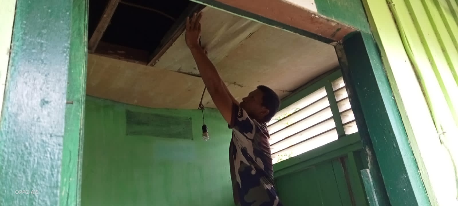 Pelaksanaan kegiatan yang dilakukan diantaranya, pembersihan lingkungan sekitar Makoramil dan perehapan plafon yang telah rusak.