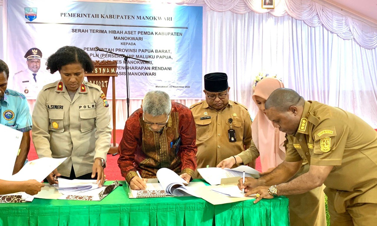 Pada kegiatan penyerahan sertifikat lahan tersebut ditandai penandatanganan Naskah Perjanjian Hibah Daerah (NPHD) dan berita acara serah terima hibah tanah daerah oleh Bupati Manokwari, Hermus Indou kepada General Manager PT. PLN (Persero) UIP Maluku Papua, Sukahar. Selain PLN, Pemerintah Kabupaten Manokwari juga menyerahkan hibah lahan aset kepada Pemerintah Provinsi Papua Barat, Polres Manokwari dan GKI Pengharapan Klasis Manokwari yang dilakukan di Hotel Mansinam Manokwari pada Selasa lalu. (Humas PLN)